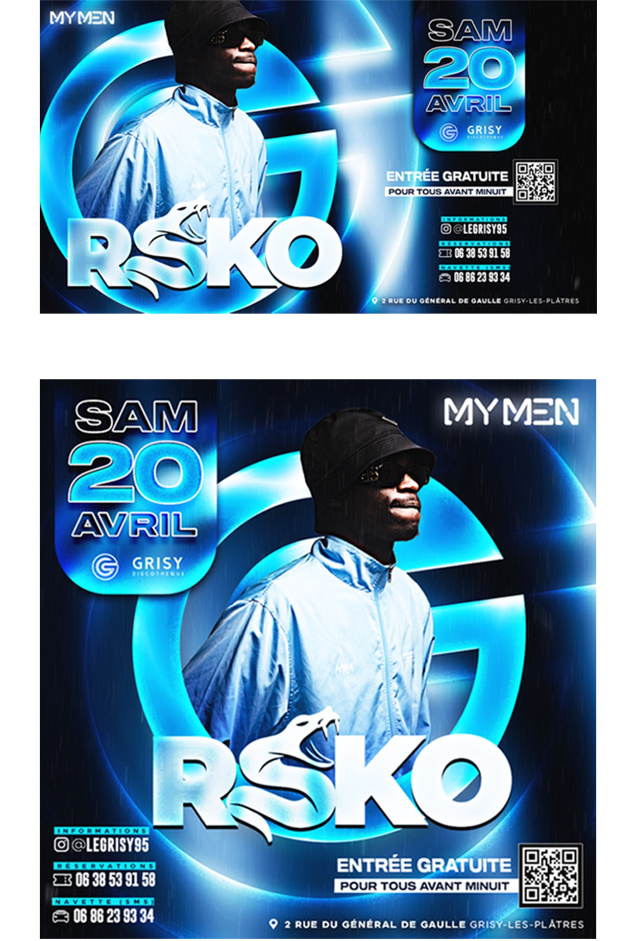 En 2022, la discothèque Grisy a fait appel à Veezu pour développer leur identité visuelle.