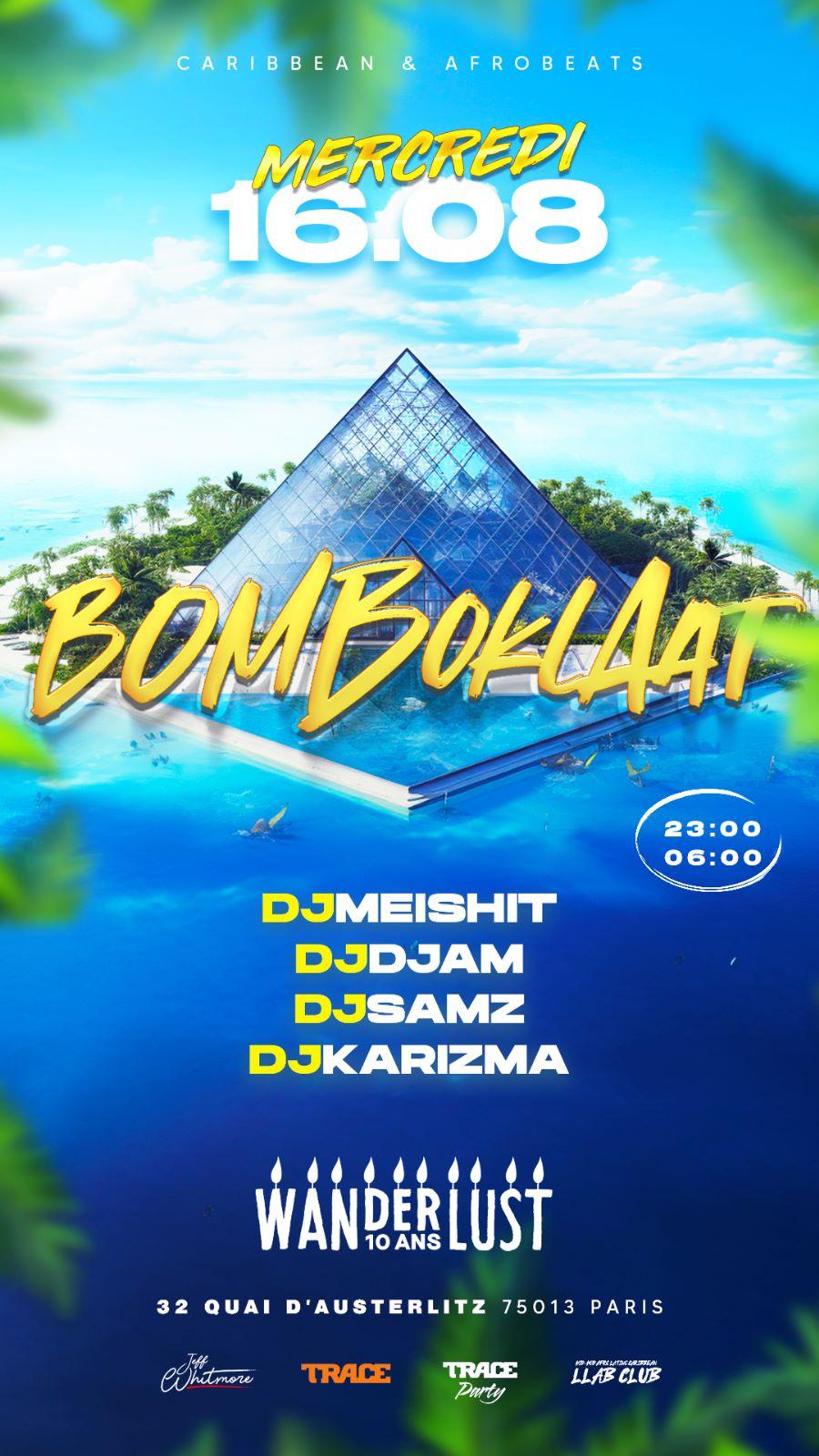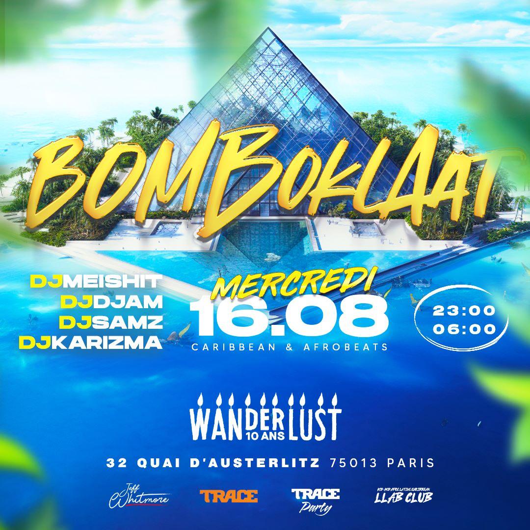 Lors de l’été 2023, l’organisateur de soirée Jeff Whitmore nous a contacté afin de l’accompagner dans la création d’une direction artistique pour sa soirée “Bomboklaat”, programmée une fois par semaine à la Wanderlust, à Paris.
